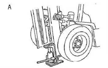 (1) 更換前輪胎:(A)在外側(cè)門架下面