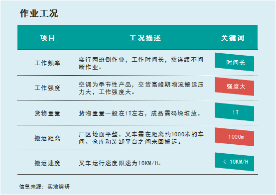 南昌基地生產(chǎn)產(chǎn)線密集,每個環(huán)節(jié)環(huán)環(huán)相扣,需要叉車連續(xù)不間斷的來回搬運,整體工況良好,具體如下: