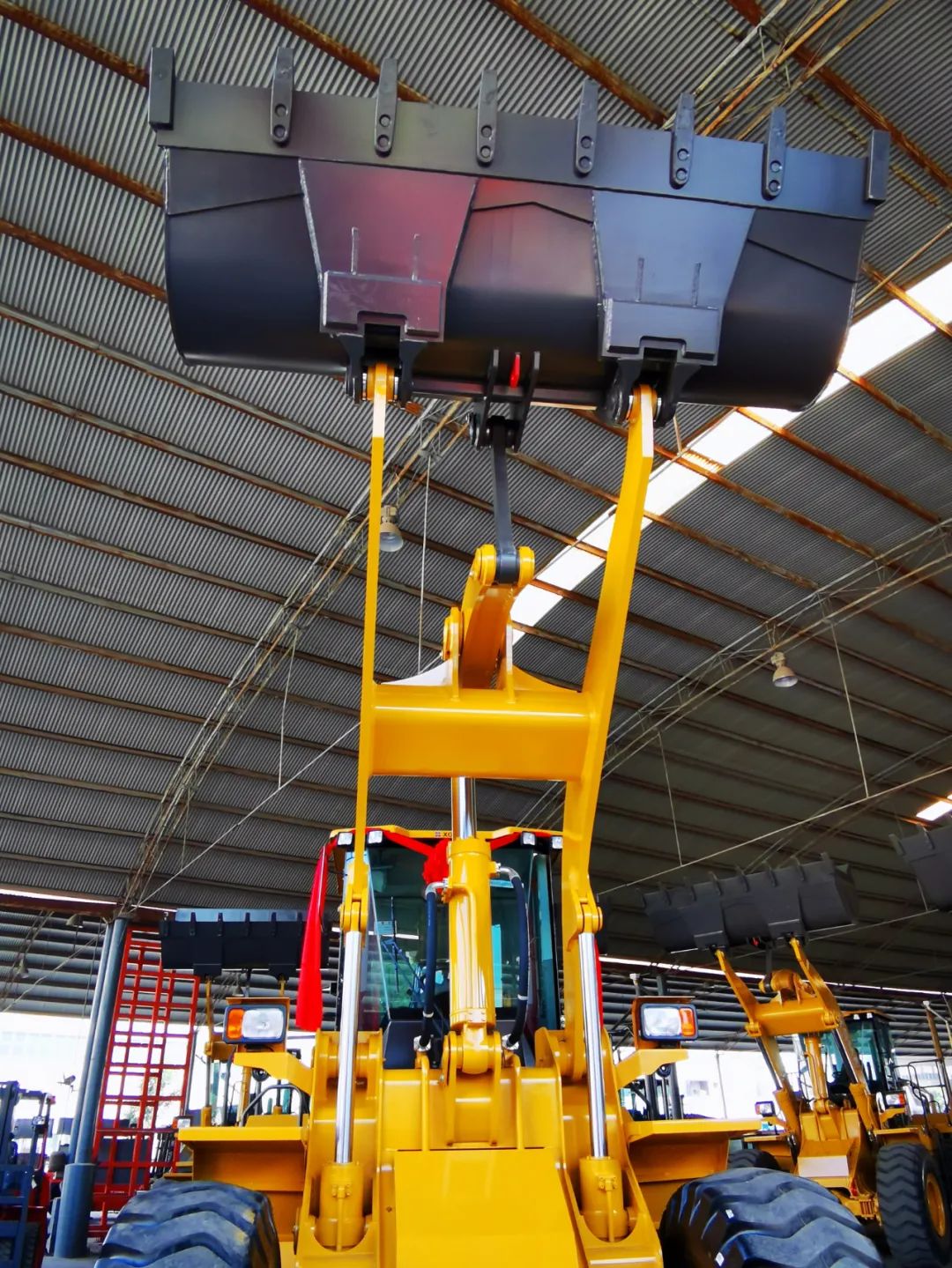 2、立式油缸工作裝置布局,高位提升力大,滿斗裝車效率高,更適用于裝卸和起吊作業工況。